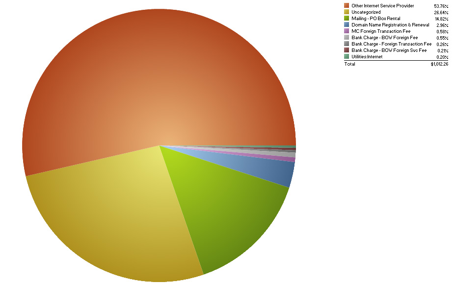 The next largest single expense, was the US$150.00 for Post Office box rental.