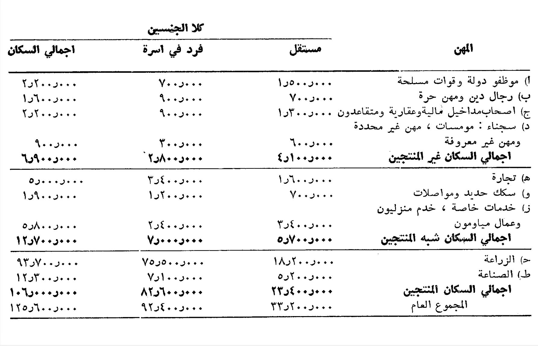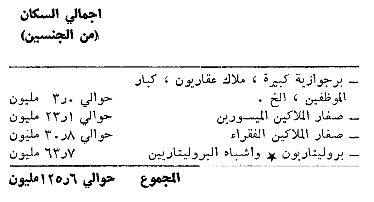 ثم أنه إذا نحن لم نشأ استبدال اللوحة الاقتصادية الشاملة بالتفاصيل الصغيرة، يجب أن نضم إلى فئة صغار الملاك الميسورين قسما كبيرا من الموظفين الاداريين في التجارة والصناعة والكتبة والمثقفين البرجوازيين والموظفين الحكوميين وسواهم. ولعلنا كنا هنا بالغي الحذر، مما جعلنا نبالغ في تحديد عدد هذه الفئة من السكان. فربما كان الأنسب ان نرفع الرقم بالنسبة إلى صغار الملاك الفقراء ونخفض عدد صغار الملاك الميسورين. ولكن، مهما يكن من أمر، فإننا في اجراء مثل هذه التصنيفات لا ندعي، بالطبع، الدقة الاحصائية المطلقة.