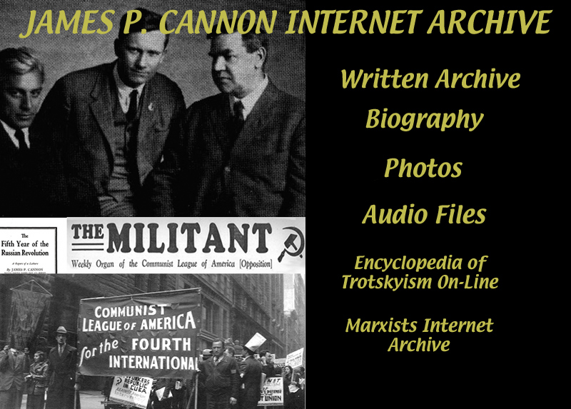 Marxists Internet Archive Encyclopedia of Trotskyism On-Line Audio Files for James P. Cannon Photo Gallary of James P. Cannon Biographical Information Archive of Written Documents