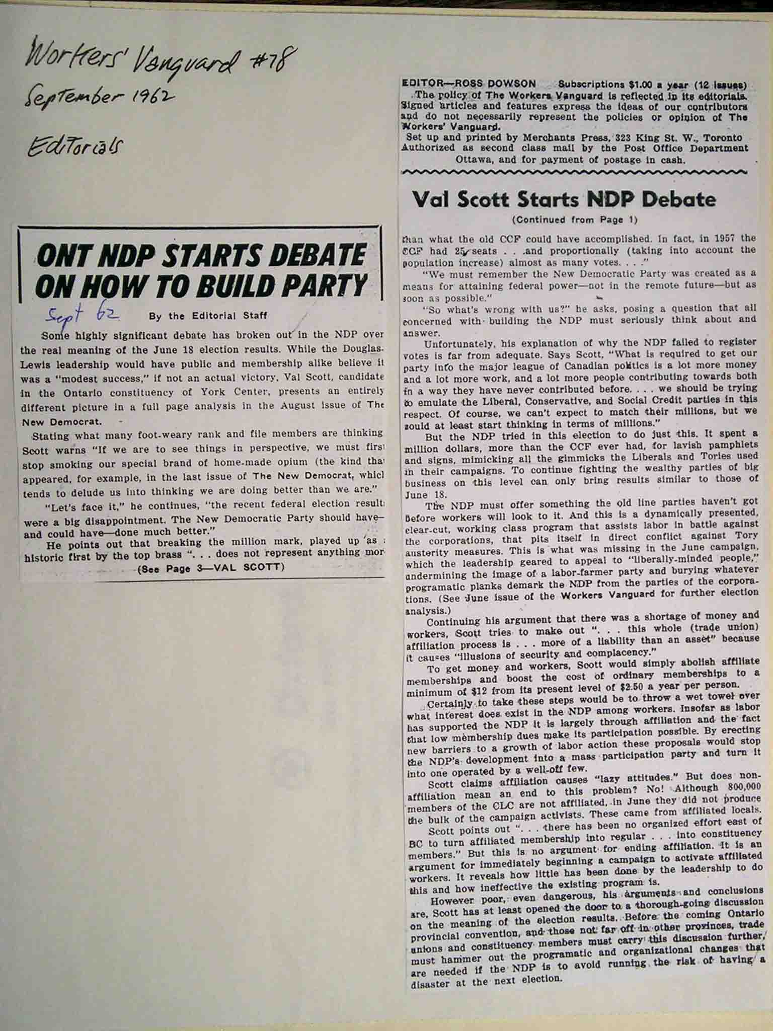 back to Ross Dowson home page back to 1962 index send a comment or question to the editors of this site