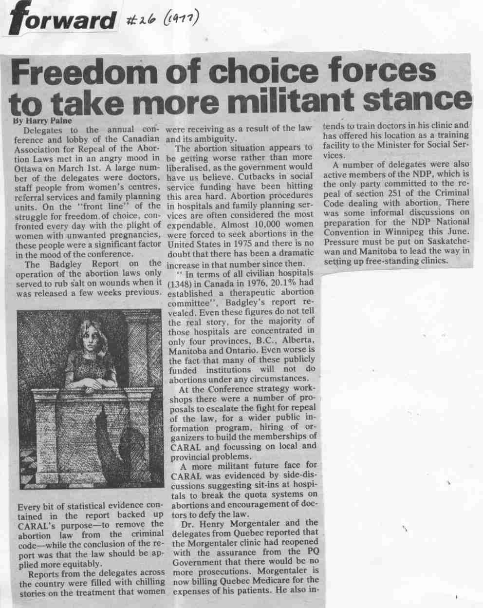 Morgentaler still in jail, gov’t steps up abuse Where are women at now? (IWY balance sheet) |