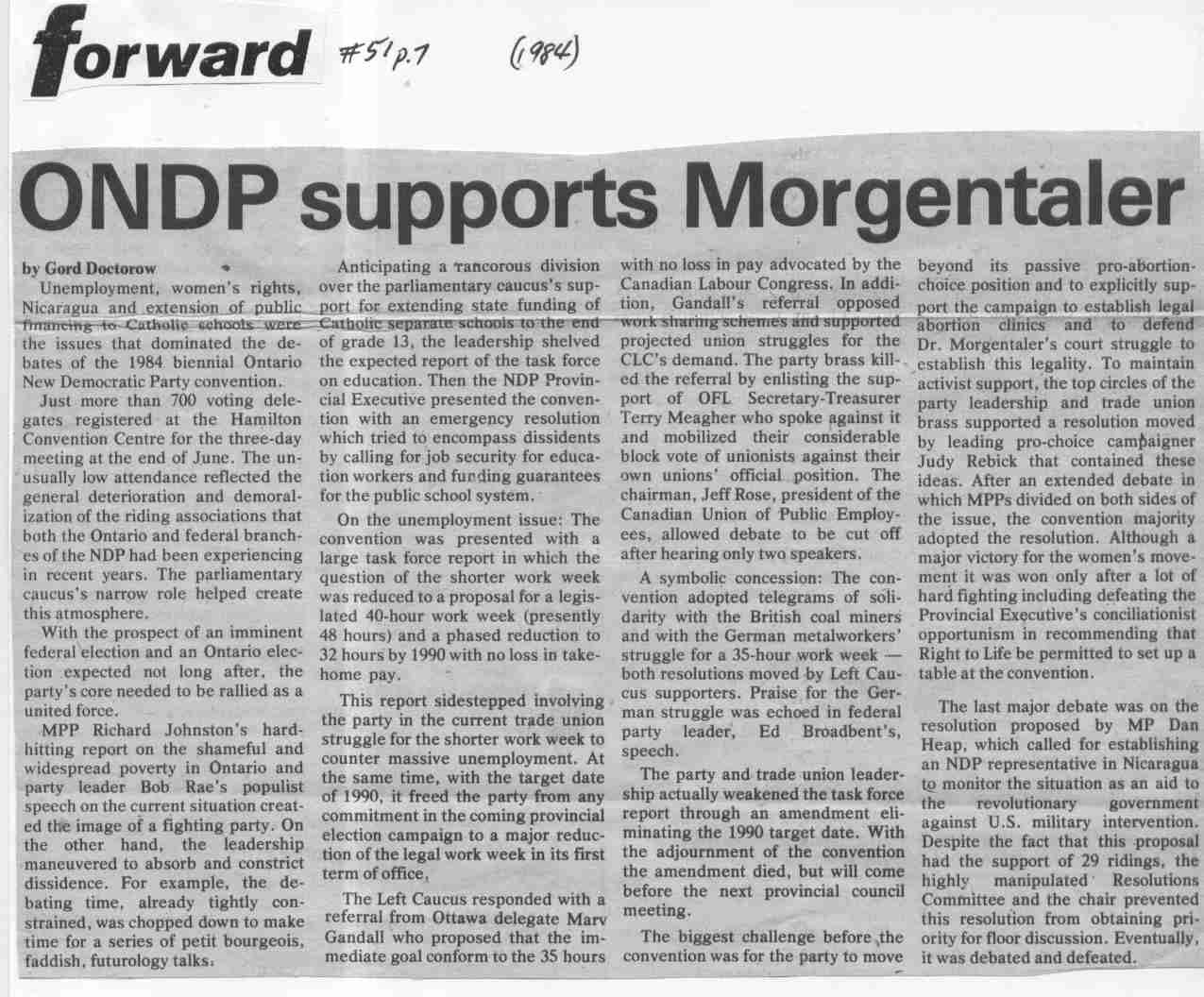 No. 51 | ONDP supports Morgentaler (Victory in) Morgentaler case |
