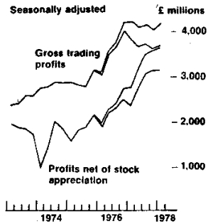 The recovery of historic-cost company profits in the mid-1970s was very much due to the fuel that inflation rapidly increased the value of the stocks of goods and raw materials in capitalists’ possession. But it has been argued (see, for instance, Glyn and Sutcliffe) that this increase was not real profit, since it had to be used to replace components and raw materials at higher prices. In the last few years accountants have tried to devise methods of profit-calculation that excludes this factor of ‘stock appreciation’.
