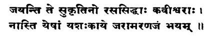 Yet, the picture so far is not only incomplete, it is actually false to the poet's own sentiments. One stanza breaks with quite incredible force through the general impression hitherto produced to give the unbiassed reader a profound if brief glimpse of the truth usually missed by professional critics and litterateurs, true but not very worthy members of Bhartrihari's own class. (V.22: )