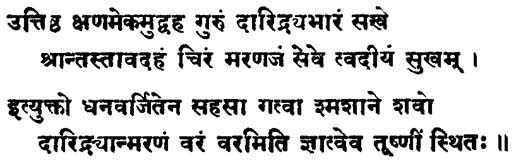 "I wandered through difficult mountainous territory quite fruitlessly, rendered service after jettisoning proper pride of class and family-unrewarded; with a complete abandon of self- respect, I ate in strangers' houses with the timidity of a crow (picking up scraps); and thou, o sin-loving greed, waxest and art not yet satisfied."