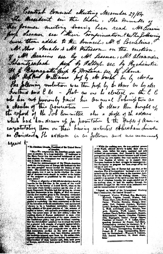 Karl Marx. Address from the Working Men’s International Association to President Johnson |