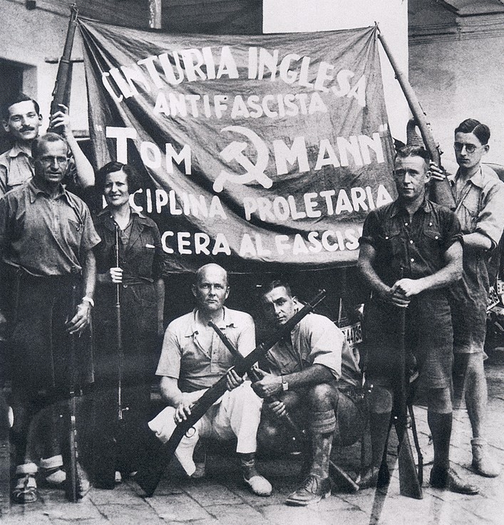 From left to right: Sid Avner, Nat Cohen (group commander), Ramona, Tom Wintringham,