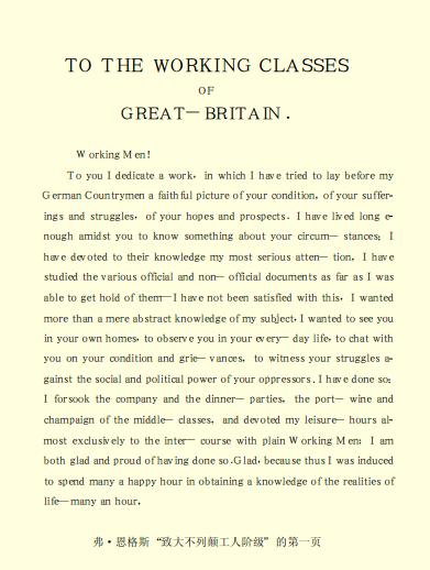 * “英国工人阶级状况”一书是弗·恩格斯1844年9月-1845年3月在巴门写成的。恩格斯在英国居住期间(1842年11月-1844年8月)研究了英国无产阶级的生活条件,他本来打算在他计划写的英国社会史中分出一章来说明这个问题,但是恩格斯为了要说明无产阶级在资产阶级社会中的特殊作用,便决定专门写一本书来研究英国工人阶级状况。