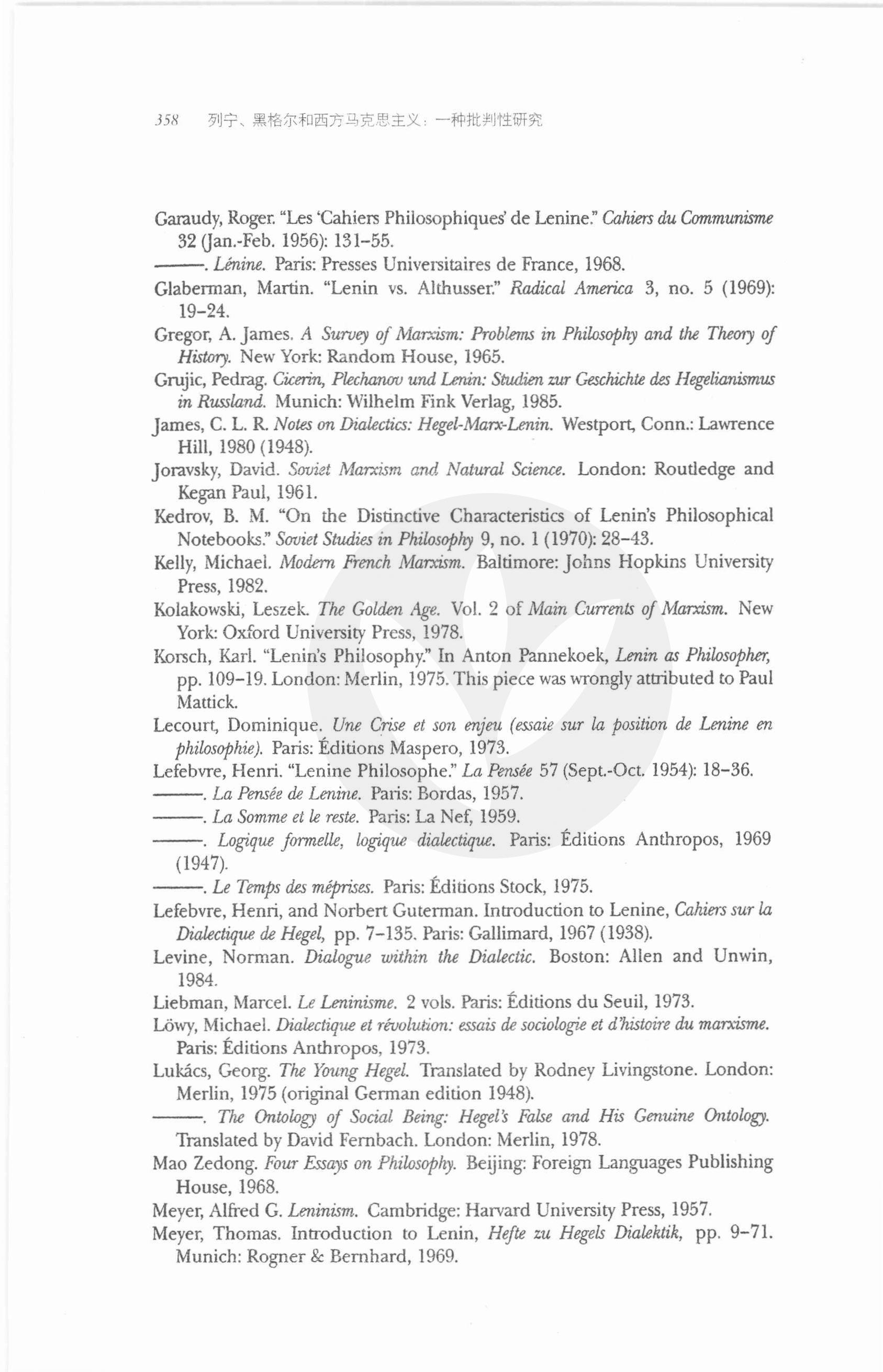 中文马克思主义文库 -> 列宁 -> 传记·回忆·评论 -> 〔美〕凯文·安德森《列宁、黑格尔和西方马克思主义》(1995)