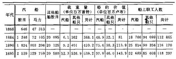 俄国的商船队在1868年有汽船51艘,装载量为14300拉斯特①