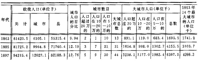 我们所考察的这一过程的最明显的表现,就是城市的增加。改革后时代欧俄(50个省)城市增加的资料如下①◎第200页◎
