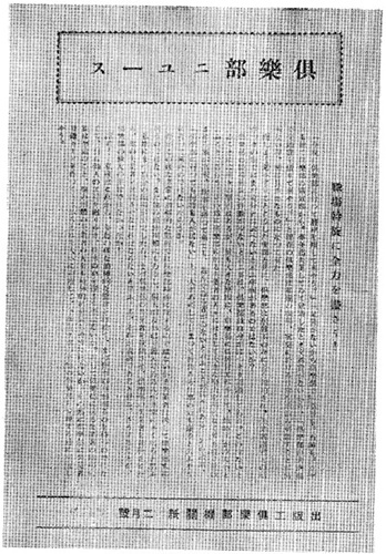 在和工会时期,多亏了小野印刷的老板的好意,以及会员们的协助,我们才能印刷会刊。但是,改为俱乐部后,这种手工业式的做法就不能满足要求了。《俱乐部新闻》是在神田的冢田印刷厂印制的;有一位会员在那家工厂工作,他说服了老板,让老板给我们优惠价。我们的印量是一千份左右,印刷费是九元左右。一位会员向冢田印刷的老板介绍了俱乐部的宗旨,请求老板给我们打折,老板同意了,他还说了一番同情的话: