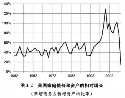 图3.2 美国家庭债务和资产的相对增长