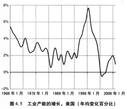 图4.5 工业产能的增长,美国(年均变化百分比)