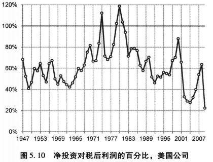 图5.10 净投资对税后利润的百分比,美国公司