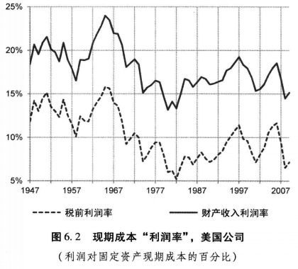 [7] 现期成本固定资产的数据来自于BEA的固定资产表6.1第2行。现期成本“利润率”的分母通常是年末数字;我遵循了这一惯例。关于财产收入和税前利润的现期成本衡量的数据和我用来计算它们的方法,见第五章附录。