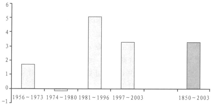 图2.3 长期实际利率(1850~2003)