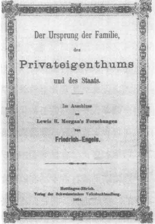 当他渐渐变老的时候,他对历史的兴趣比过去更浓了。农业史——马克思认为他是专家——是他注意力特别集中的领域。这些关于原始社会的研究缔结的成果体现为1884年出版的《家庭、私有制和国家的起源》。它主要依靠路易斯·摩尔根出版于1877年的著作《古代社会》。马克思在逝世前已经对这本书研究了相当长的一段时间。恩格斯将他这本书描述为“实现遗愿”之作,因为他使用了马克思的笔记——尽管恩格斯对摩尔根的专门研究比马克思更多,他将摩尔根视为专家中的权威,更为集中地研究了他作品中的社会政治问题。在恩格斯看来,“摩尔根在美国,以他自己的方式,重新发现了40年前马克思所发现的唯物主义历史观”。他认为,摩尔根的人类学发现“正如达尔文的进化论对于生物学和马克思的剩余价值理论对于政治经济学的意义一样”[1]。立足于摩尔根的理论,恩格斯比较了原始社会的公共特征以及后来产生的剥削关系。他研究了家庭的本质特别是妇女角色的不断变化,进而阐述了作为剥削阶级的工具的国家的兴起。