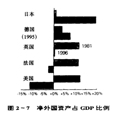正如特纳所说,与上次资本自由地在全世界的游荡相比,情况已经发生了变化。一个不同就是凯恩斯所说的“金钱资本”。与现代热衷于黄金的人所提出的神话不同,在1914年之前的黄金标准时期,经常项目的不平衡(以及相应的资本流动)是持久的而且是规模巨大的。当时是用英镑作为黄金的替代物。1880~1914年,英国的往来账户顺差是其的4.5%,这使得1914年的外国净投资占相当于GNP的130%~140%。国外投资的回报率为5%,是英国政府债券回报率的2倍。日本占GDP的14%的顺差和英国的高峰时期相比,是可以接受的,但5%的回报率在今天看来是相当可笑的。