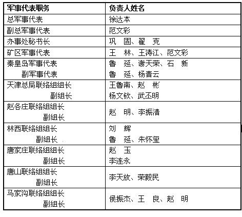 秦皇岛派驻开滦军事代表,设正、副军事代表下有办公室。