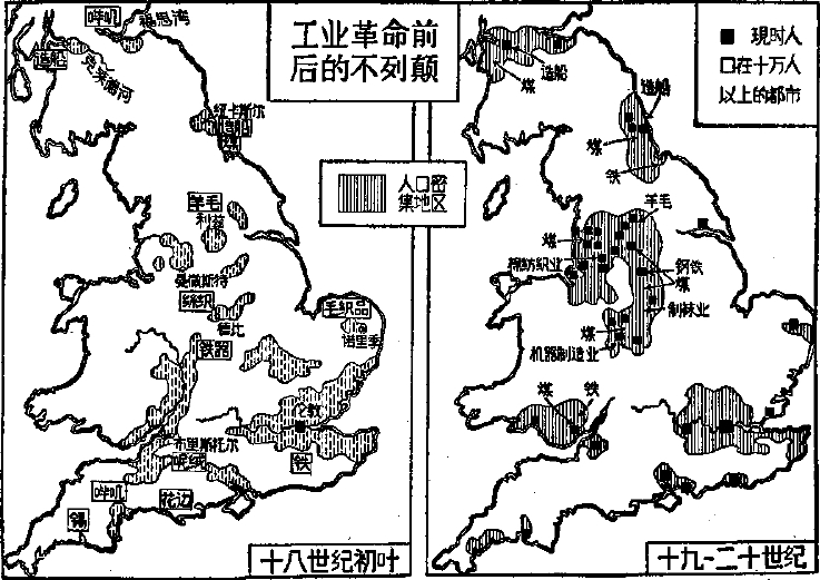 在实际等于强制出卖的情形下,农民得来的款项通常数目太小,即使他们知道如何善用此款,把它用在任何其他事业上,也不能有所成就。少数人,尤其兰开夏和约克郡的人,成为成功的工厂主,但绝大多数则很快就用尽他们的金钱,然后无论在田地上或新兴工业城市中,都降到雇佣工人的地位。第三阶级——茅舍农(cottagers)——的权利更受到无情的侵害。他们很少有人能证明,他们在乡村公地上惯享的权利有任何法律的根据,更少有人因为丧失了这些权利而得到适量的赔偿。这个阶级的人原来全部都赖兼营几种职业来谋生,既从事家庭工业,又饲养少数牲畜或家禽,又经常或偶尔作雇工,现在觉着不得不完全依靠其中最后一条活路,因为圈地时代也正是新工厂的竞争正在摧毁家庭工业的时代。恩勒勋爵在他所著《英国农业的过去和现在》一书中用了将近三页的篇幅,列举当时灭亡了的地方工业和家庭工业。自十八世纪中叶前后起,由于农业技术的改进,劳动力的节约开始成为可能。工资比物价跌得快。许多地方的农舍被拆毁或任其坍塌,在英国大半的农村中,人口既形减少,大多数人的生活程度又降低。到了十八世纪的晚期,不但人口总数增加,而且人口有从一地迁到他地的显著移动。我们没有可靠的数字可用,但人口增加比曾经设想的为小,而人口移动比曾经设想的为大,这一点至少似乎是确实的。 农业革命具有三个远超过农业本身范围的结果。第一,这个革命增加了土地的产量,因而使英国能供给新城市庞大工业人口的食粮。 第二,这个革命造成了一个雇工后备军,他们现在完全脱离了与土地的任何联系,他们是没有乡土或财产牵挂的人。这个革命准备了一支自由劳动者的队伍,他们与上章所略述的那种自由资本积累相应,而在大规模商品生产终于成为可能的时候,这种劳动与这种资本的结合就是产业革命的实质。 第三,工业品的大大扩充的国内市场创立起来了。自给农业的农人从事于家庭工业,与外界相隔绝,可以消费很多而买进的东西很少。这种农人现在已经演变为工人,通常被迫大减其消费,可是他所消费的每一物品都必须由购买而来。只有以可靠的国内市场为坚固基础,大规模的输出工业才能建立起来。 二、燃料,铁和运输十八世纪初年,英国遭到更加严重的燃料缺乏。一百年前,燃料的缺乏曾引起煤矿业的大大增长,以至伦敦主要靠煤为家用燃料,其他大城市虽不如伦敦用煤之多,但也是如此,并且整系列的新工业已经完全在用煤的基础上发展出来。尽管这样,英国的木材资源的消耗仍然很快。几百年来,大森林一直被破坏,树木被砍伐,土地被开垦。补种树木的事做得极少。家用木柴始成为稀罕昂贵的东西,同时制铁工业有陷于消灭的危险。一切冶炼工业都用木炭,所用的方法又非常简陋,以至生产一吨铁,需要用许多吨木柴。苏塞克斯林区的木材首先告罄。炼铁工业迁到希罗普郡的林区和丁恩森林,两处的森林都已呈衰竭的迹象。爱尔兰的树木不久也被砍伐殆尽[参看本书第九章第一节——作者注]。有人屡次努力想在新英格兰建立大规模的炼铁工业,但在这里,航海条例成为工业发展的障碍。在英国本土,铁的生产一年比一年衰落,于是英国越来越依赖瑞典和俄罗斯的供应。 同时,用煤做为燃料来炼铁的试验正在进行。自中世纪很早的时候起,煤已经在家庭之中和若干工业上使用了,并且在纽卡斯尔附近,在苏格兰和其他有煤层接近地面并且水路运输畅通之处,已开采了大批的煤矿。这种太恩河流域的煤曾大量运到伦敦来。 甚至在内战以前,就有用煤炼铁的尝试,但到十八世纪中叶燃料供应十分紧张的时候,用煤炼铁才成为商业上可能的事。达比和1760年在卡朗(Carron)设立有名工厂的罗巴克,都做出许多改进,这些改进指明了,不但用焦煤炼铁可以实行,而且只要用充分强大的风力除去硫磺和其他杂质,焦煤就是一种远比木炭经济而有效的燃料。1765年,制铁工业在默瑟尔建立了新中心,从此以后,鼓风炉的数目和尺寸逐年都有增加。1740年,生铁产量仅一万七千三百五十吨,到1788年,增加到六万八千三百吨,到1796年,又增加到十二万五千零七十九吨。 没有煤就不能有现代的科学冶炼业,而现代冶炼业则是大规模工业的技术关键。没有现代冶炼业,就不能建造纺织和其他工业所需要的复杂精细的机器,也不能建造强大而精确的足为工业动力之源的蒸汽机。铁不久就用在种种新用途上:1779年,在塞文河上建筑了第一座铁桥,1790年,造成了第一只铁甲船。铁的品质和纯度的提高,与工具制造的日益精确同时并进。到本世纪末年,具有滑动台架和刨子的旋床发明了,因此,工程师才能在一英寸之内划分出越来越小的度数。没有这些发展,就不会有大规模生产所需要的复杂精密机器,并且这些发展也为机器互换零件作了准备,而互换零件就是半世纪以后真正大量生产的特色。然而英国的工业,正因为它只是个开创者,其进展大部是依照经验得来的规矩而进行的,在标准化和大量生产的方法上总是落后于美国工业的。 除了象制钉一类的较轻部门外,铁工业从来没有以家庭工业作为它的基础。苏塞克斯和中部各郡的铁业老板都是运用巨大资本的富翁,所以这个工业能迅速进展而没有多少组织上的改变。到了本世纪末叶,英国是个大输出国,甚至已开始从瑞典和西班牙输入高等矿砂而用本国采