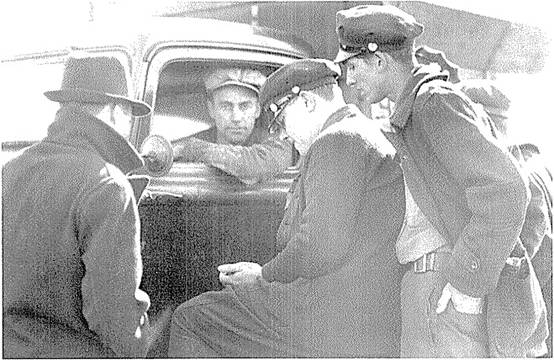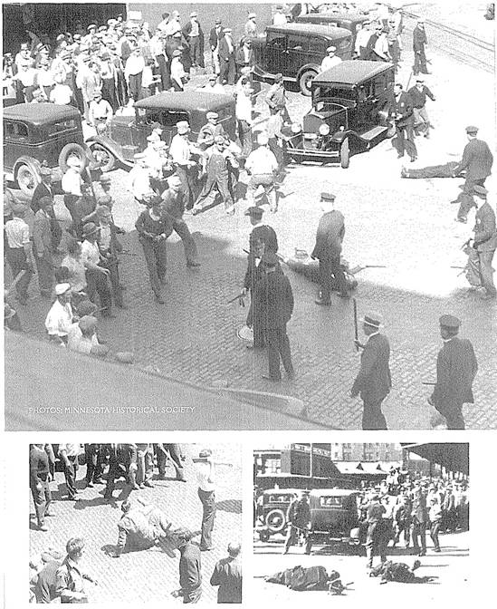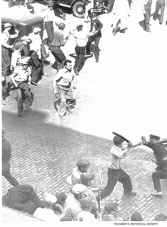 ![]() 纠察队员与警察战斗。 ![]() 1933年3月,农民在圣保罗市的明尼苏达州议会大楼前游行,要求政府提供援助,在1934年罢工中,农民成了工人的盟友。 ![]() 1934年4月6日,由于联邦政府提供的“救济”过少,甚至达不到贫困线,一万名失业工人在明尼阿波利斯游行抗议。警察随后用催泪弹驱散了游行队伍。 ![]() 1932年7月,15000名失业的一战退伍军人在华盛顿国会大厦附近扎营,要求获得他们应得的退役金。道格拉斯·麦克阿瑟将军出动骑兵和坦克镇压,导致两人死亡,多人受伤。 ![]() 1932年3月,3000名失业工人在福特汽车公司红河工厂举行游行,遭到警察镇压,导致5人死亡,60人受伤。 ![]() 1932年2月,日帝侵略上海,残暴的日寇焚毁了工人区,而富人居住的租界却被美军保卫着,毫发未损。奥马哈的报纸上刊登的这类照片,使法雷尔·多布斯理解了阶级之间是不平等的,明白了世界资本主义体系的野蛮是令人无法忍受的。 ![]() ![]() 以上两张图是“治安队狼狈逃窜之战”(Battle of Deputies Run):1934年5月21—22日,几百名工人在明尼阿波利斯市场区包围了警察和治安队(公民联盟收买的打手),把他们打得屁滚尿流。 ![]() “血腥星期五”惨案:1934年7月20日,警察向手无寸铁的纠察队员开枪,导致67名纠察队员和路人受伤,其中两名罢工工人因伤重身亡(亨利·内斯于7月22日逝世,约翰·贝洛于8月1日逝世)。 ![]() 1934年7月24日,四万多人为亨利·内斯送葬。 ![]() 为了纪念亨利·内斯,同志们在574分会罢工总部入口上挂上了花圈和牌匾,牌匾上刻着他的遗言:“告诉小伙子们,别让我失望。” ![]() 奥尔森州长(左)和联邦调解员弗兰西斯·哈斯神父(中)与尤金·邓尼根(右)。他们相互勾结,想把“公平”的罢工协议推销给工人。 ![]() 7月26日,奥尔森出动四千国民警卫队,在明尼阿波利斯实施戒严。图为奥尔森的军队保护工贼卸货。 ![]() 8月1日,国民警卫队士兵端着上了刺刀的步枪,查抄了劳联总部。 ![]() 上图:8月1日,国民警卫队查封了574分会罢工总部,抓走了雷·邓恩;下图:格兰特·邓恩(左一)与574分会律师阿尔伯特·戈尔德曼(右一)迎接比尔·布朗(戴白帽者)、迈尔斯·邓恩和雷·邓恩出狱。 ![]() 纠察队员检查卡车司机是否持有工会发放的通行证。 ![]() 8月1日,就在国民警卫队查封工会总部、逮捕罢工领袖之后,仅仅过了几个钟头,国民警卫队就接到了工贼打来的500多个求救电话。图为被掀翻的工贼卡车。 ![]() 纠察队总调度员凯利·波斯特尔。 ![]() 罢工期间,为了团结农民,574分会特地租了一个停车场,让农民在这个停车场里卖菜,而且不收摊位费。 ![]() 罢工工人在工会食堂里打饭。这个食堂是由妇女后援会运营的。 ![]() 上图:574分会的罢工领袖,左起:比尔·布朗、法雷尔·多布斯和卡尔·斯科格伦德;中图:邓恩三兄弟,左起:雷、格兰特和迈尔斯;下图:马克斯·沙赫特曼(左)与詹姆斯·坎农(右)。 ![]() 上图:1934年纺织工人总罢工期间的乔治亚州格林斯伯罗市纺织工人纠察队,在大西洋沿岸有四十万人参加了这次罢工。罗斯福派出四万军队镇压罢工,导致16人死亡,数百人受伤。 下图:1936年,纽约哈莱姆区的工人为了改善生活条件而举行罢工。 ![]() 左图:西海岸码头装卸工人坚持罢工三个月,迫使资方承认工会、增加工资并减少劳动时间;中图:1934年8月25日的《战士报》头版刊登了明尼阿波利斯卡车司机罢工胜利的消息;右图:俄亥俄州托莱多市的汽车配件工人举行罢工,战胜了老板。在这次罢工期间,发生了长达六天的巷战,史称切斯特纳特山之战(Battle of Chestnut),这张照片就是当时拍摄的。 ![]() 1936年12月,密歇根州弗林特市的通用汽车工人举行静坐罢工,次年2月,罢工赢得胜利。 ![]() 1937年元旦,罢工中的底特律汽车工人举行示威游行。 ![]() 密歇根工人抗议共和钢铁公司枪杀芝加哥工人。 ![]() 卡车司机总工会内布拉斯加州奥马哈市第554分会的领导人首次进行纠察。左起:迪克·索登贝格(Dick Sodenberg)、路易斯·米勒(Louis Miller)与马尔科姆·拉夫(Malcolm Love)。 ![]() ![]() 明尼阿波利斯—圣保罗地区的工会会员成立了工会自卫团(Union Defense Guard),抵挡老板豢养的法西斯分子和其它反动派。 ![]() 工会自卫团总团长、544分会会员雷·雷因波尔特。 ![]() 1939年,明尼阿波利斯公共事业振兴署下水道工程项目工人举行罢工。 ![]() 1939年8月,蒙冤入狱长达23年之久的加利福尼亚工会组织者汤姆·穆尼(Tom Mooney)访问明尼阿波利斯,在工人大会上发表讲话。 ![]() 左图:1937年12月,由于日军轰炸了中国境内的美国炮艇,美国国内掀起了出兵的喧嚣声,在这一片喧嚣声中,明尼阿波利斯卡车司机联合委员会的周报《西北组织者》指出,美国大公司正在残酷剥削中国劳动者。“他们说的‘我们’到底是谁?凭什么叫我们出钱出人去保护身在中国的‘他们’?让美军全部撤离中国!”;右图:1940年1月,多布斯辞去国际卡车司机兄弟会总组织者的职务,前往纽约担任社会主义工人党的工人与组织书记途中,前往墨西哥拜访了托洛茨基同志。 ![]() 1941年,罗斯福政府为了进行战争动员、镇压阶级斗争,动用臭名昭著的《史密斯法案》(Smith Act),起诉了544分会和社会主义工人党的18位领导人。下图:1943年12月,多布斯(中间者)和另外17人被指控犯有“煽动暴乱”的罪名,这张照片是在他们被押往联邦监狱的途中拍摄的。多布斯右边是党的领袖卡尔·斯科格伦德、阿尔