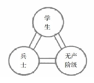 由无产阶级、兵士、学生三角联盟形成的直接行动,我现在再把三者关系,画图如下: