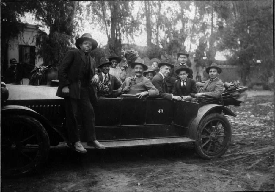 José Carlos, con amigos, probablemente en o cerca de Lima. De pie al extremo