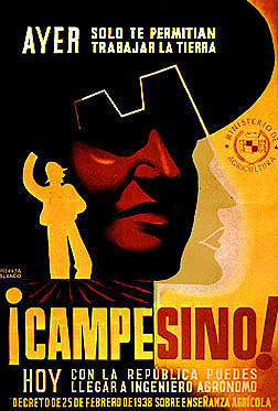Au début du XX° siècle, l'Espagne est un pays essentiellement agricole. C'est à l'agriculture que se consacrent plus de 70 % de sa population active. Le paysan espagnol travaille avec les mêmes outils que son ancêtre au Moyen Age : dans l'ensemble du pays, l'araire l'emporte encore sur la charrue. Les rendements à l'hectare sont parmi les plus faibles d'Europe, et plus de 30 % des terres cultivables restent en friche.