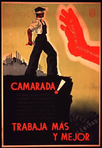 [12] Depuis un an déjà, les orateurs communistes manifestaient une telle modération que, lors de la campagne électorale de février, les socialistes, pour les ridiculiser, avaient lancé le faux mot d'ordre : « Pour sauver l'Espagne du marxisme, votez communiste. »