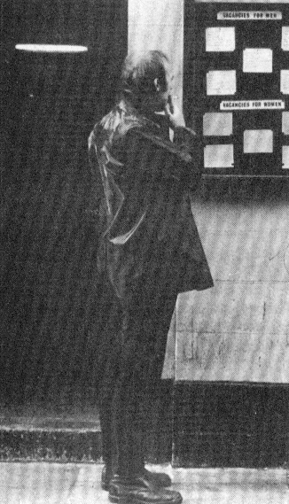 It’s lonely and degrading standing in the dole queue (above) and once outside you’re on your own (centre left) to search for work. Workers at Fisher Bendix (centre right) fought against the sack in 1972 by staging a sit-in, one alternative in the fight against redundancy. Strachans workers in opposition to the bosses and union leaders occupy their factory (bottom) and show that the answer to isolation on the dole is solidarity on the shop floor.