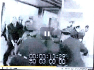 Stop action from the video, MALCOLM X: The Assassination of Malcolm X, of the police catching a second are video evidence of the second man caught by the police after Malcolm’s at the assassination.