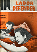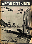 However, combining the personal holdings of original Labor Defender issues belonging to Marty Goodman and those of Holt Labor Library of San Francisco, were were able to scan from original paper roughly half of the issues in the first 3 years (1926 - 1928). Additionally, thanks to the kindness of University of California at Berkeley, we were able to scan bound volumes of original issues of Labor Defender for 1934-1937, thus presenting the rarely seen color covers and use of spot color in interior pages of these issues. Then the Hoover Institution Library of Stanford University kindly and generously helped us out by making for us color scans of covers from many isses in their collection that we did not have access to here, so that now we believe we are presenting here in full color high quality scans of ALL covers of Labor Defender that used color on the cover.