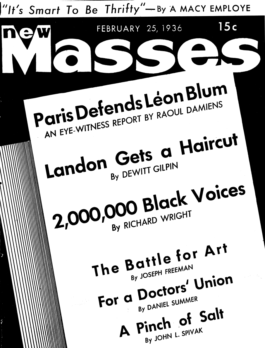 Editors: M.R. Bendiner, Joseph Freeman, Michael Gold, Crockett Johnson, Bruce Minton, Arnold Reid, Isidor Schneider, Alexander Taylor, Marguerite Young
