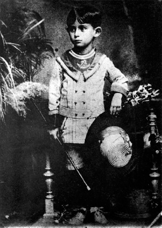 Erano i tempi di quegli atelier pieni di drappeggi e palme, arazzi e cavalletti che oscillavano ambiguamente fra esecuzione capitale e messinscena, camera di tortura e sala del trono, e dei quali offre un'impressionante testimonianza uno dei primi ritratti di Kafka*6. Il ragazzino, circa seienne, posa in piedi in un abitino infantile stretto (quasi avvilente), sovraccarico di trine, in una sorta di scenario da giardino d'inverno. Rami di palma si levano sullo sfondo. E, quasi a voler render ancor più afosi e soffocanti tropici di carta, il modello folce un enorme cappello con tesa larga à la spagnola. In tale scenografia il modello sparirebbe se gli occhi, infinitamente tristi, non lo dominassero.