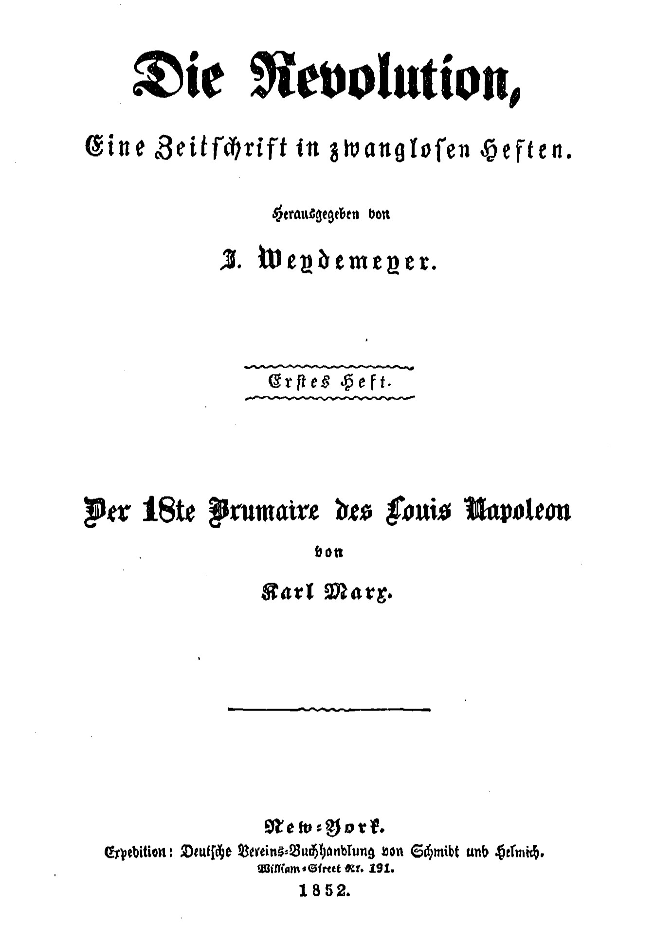 Primeira edição: na revista Die Revolution, Nova Iorque, 1852.