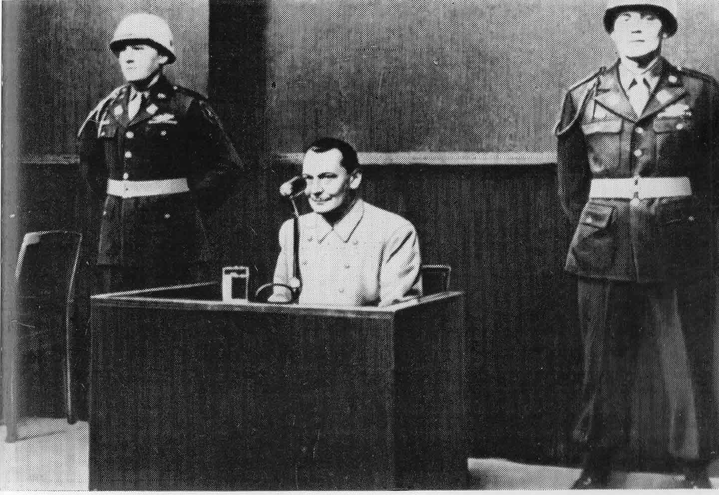 Goering achou que o banco dos réus era para ele um auditório demasiado restrito. Debruçou-se na barra para falar aos advogados. Como se veio depois a saber, disse a um deles: