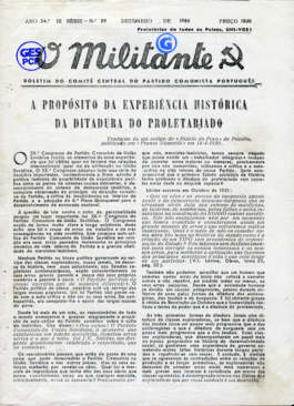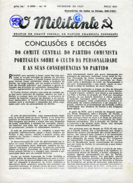 “O militante” nasceu para apoiar o trabalho de construção do PCP na clandestinidade, com conteúdo essencialmente dirigido a quadros e militantes do Partido e visando a elevação da sua preparação política e ideológica. O primeiro exemplar data muito provavelmente de 1933, então com a designação de Boletim do Secretariado, mas foi na sequência da reorganização de 1940/41 que se tornou num instrumento imprescindível à acção revolucionária do Partido.