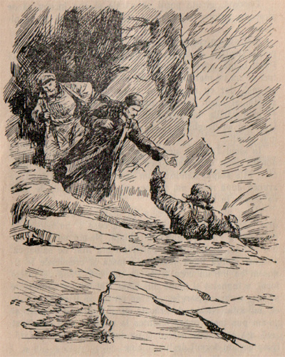 Eram uzi leoarcă, geruia de mama focului, viscolul urla. Ne pătrunsese frigul până la oase şi hainele ni se acoperiseră cu o pojghiţă de ghiaţă. Ne-am adăpostit într'o vâlcea, unde furtuna parcă nu era atât de sălbatică. Serghei alergă după vreascuri ; iasca şi cremenele le ţinusem eu într'un corn şi nu se udaseră. Până să facem focul, a îngheţat şi inima din mine. Cât despre Sandro, ce să mai vorbesc ! Serghei aprinse un foc să frigi un bou la el, nu alta. Ne-am desbrăcat, eu şi Sandro, la piele şi ne-am pus toată îmbrăcămintea la uscat ; apoi am făcut ceai, aşa că ne-am încălzit şi pe dinăuntru şi pe dinafară. Noaptea, am dormit destul de bine.