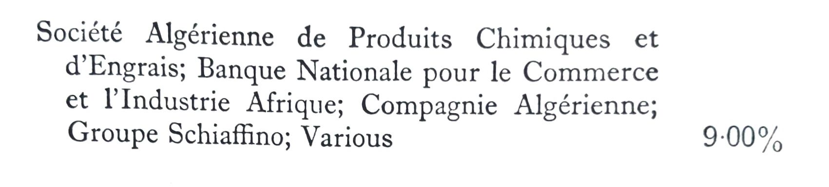 The Société de Djebel-Onk, with a capital of 30 million new francs, comprises the following interests: