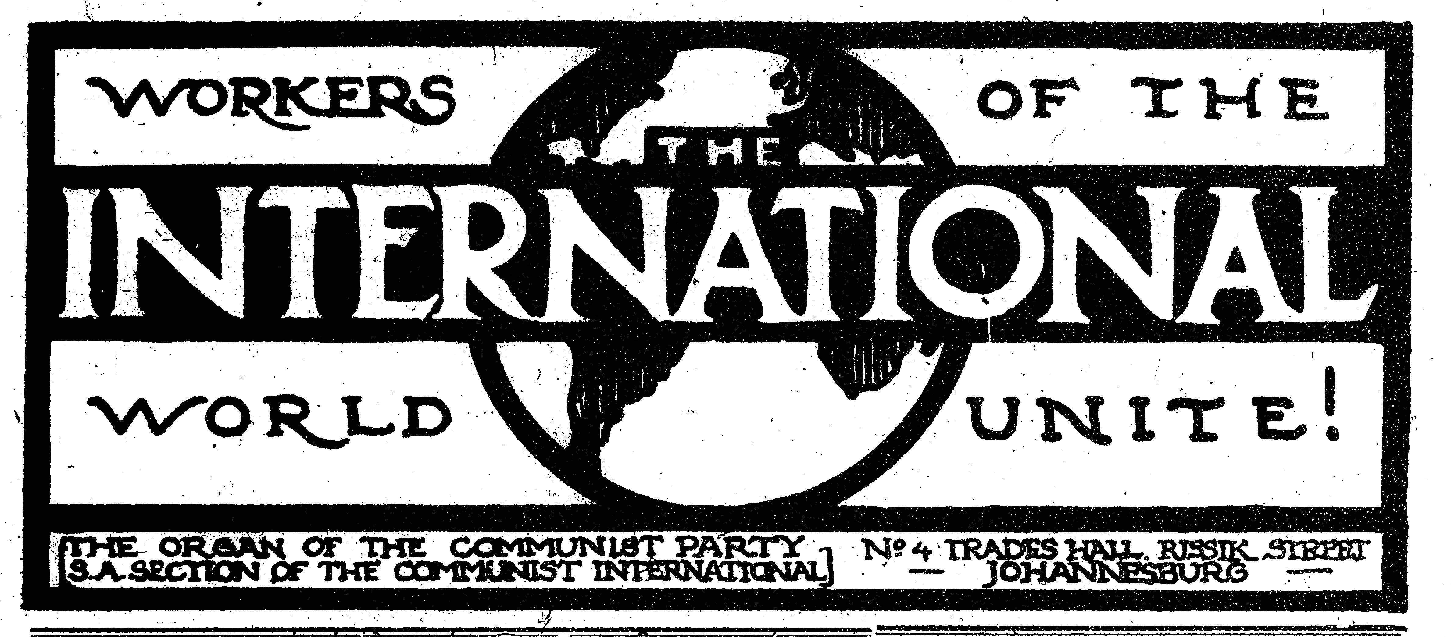 The International was the weekly organ of the International Socialist League of South Africa (ISL). The ISL was the earliest major Marxist party in South Africa, and a direct predecessor of the South African Communist Party. Begun in 1915, The International initially espoused a political orientation strongly influenced by the U.S. Industrial Workers of the World (IWW) and Daniel De Leon’s Socialist Labor Party.