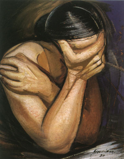 Angústia(A Mãe do Artista). Painted by David Alfaro Siqueiros. Vinilete sobre eucatex, 94 x 76 cm.