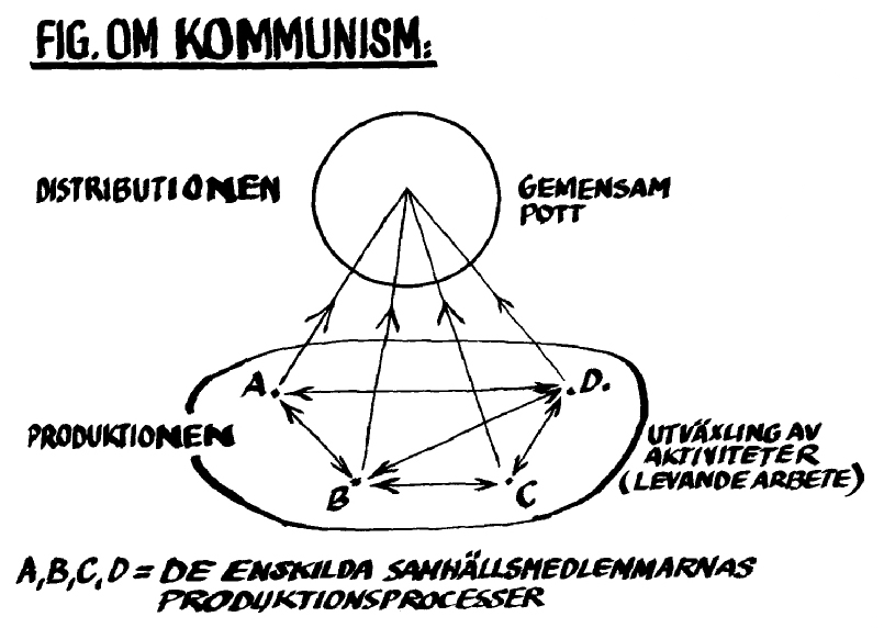 [3] Det mycket abstrakta begreppet om varuproduktion implicerar att dess motsättning (kommunismen) framstår lika abstrakt: Vad som sägs härom i det följande täcker såväl den primitiva kommunismen, som kommer före varuproduktion, som den högt utvecklade kommunismen, som följer efter.