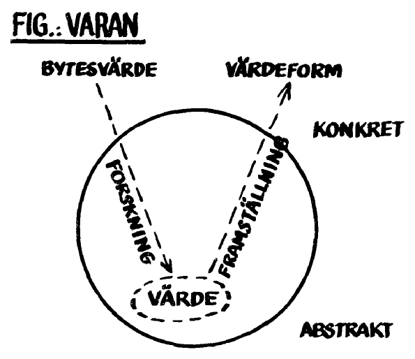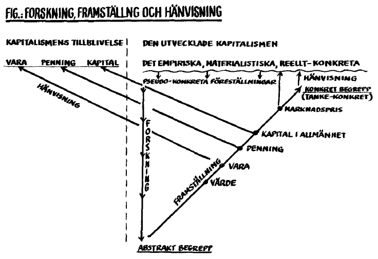 På grundval härav analyseras i forskningsprocessen de mest abstrakta begreppen (vara, värde) fram.