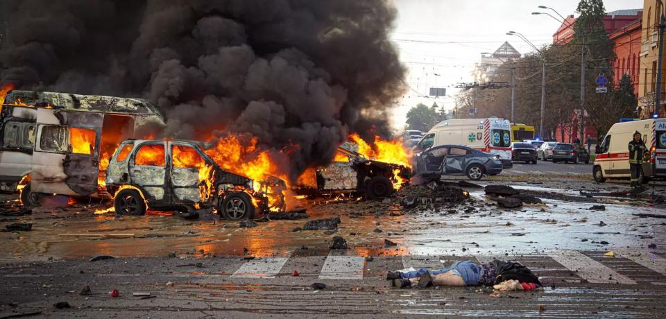 Ukrainska huvudstaden Kyiv efter rysk beskjutning 10 oktober 2022.